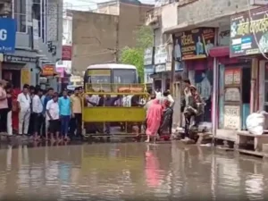 बस स्टैंड पर जल भराव से व्यापारियों में रोष: पानी निकासी की मांग को लेकर विरोध जारी
